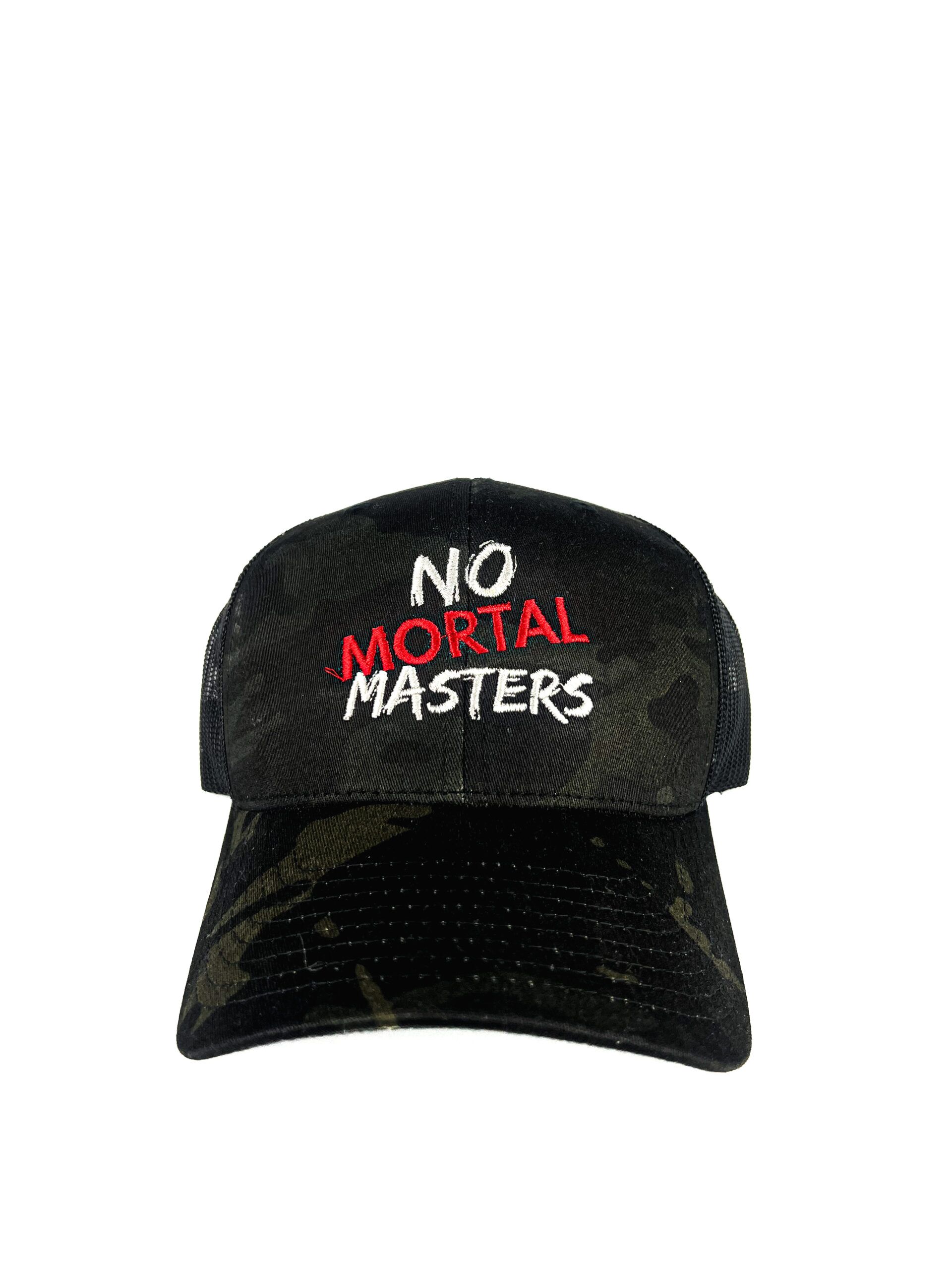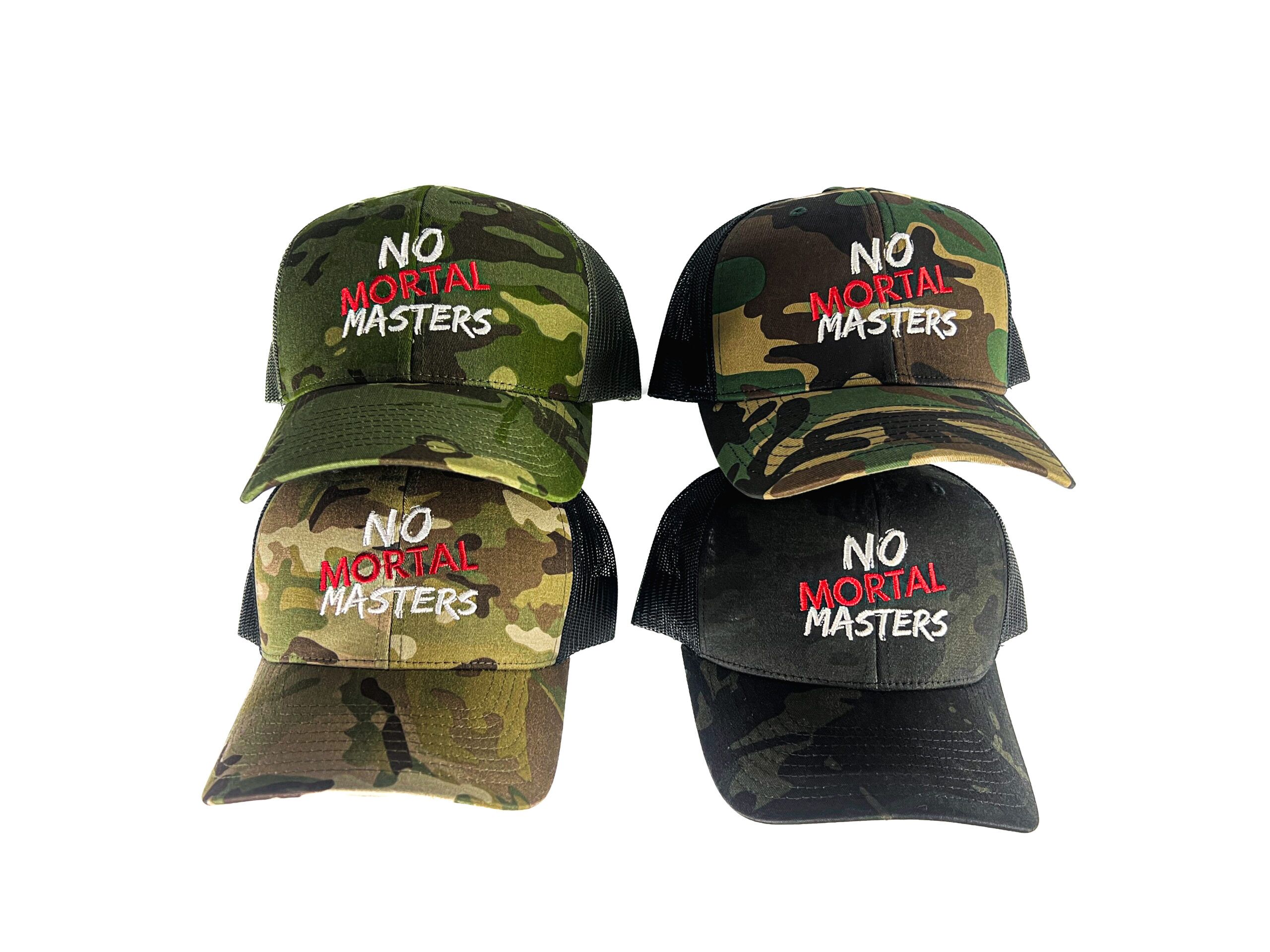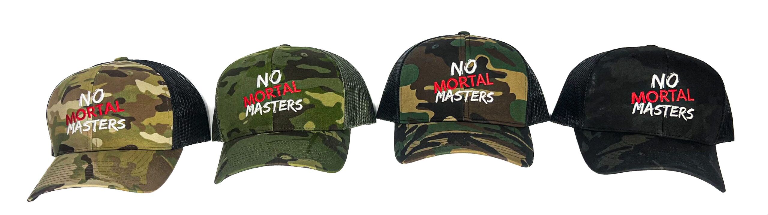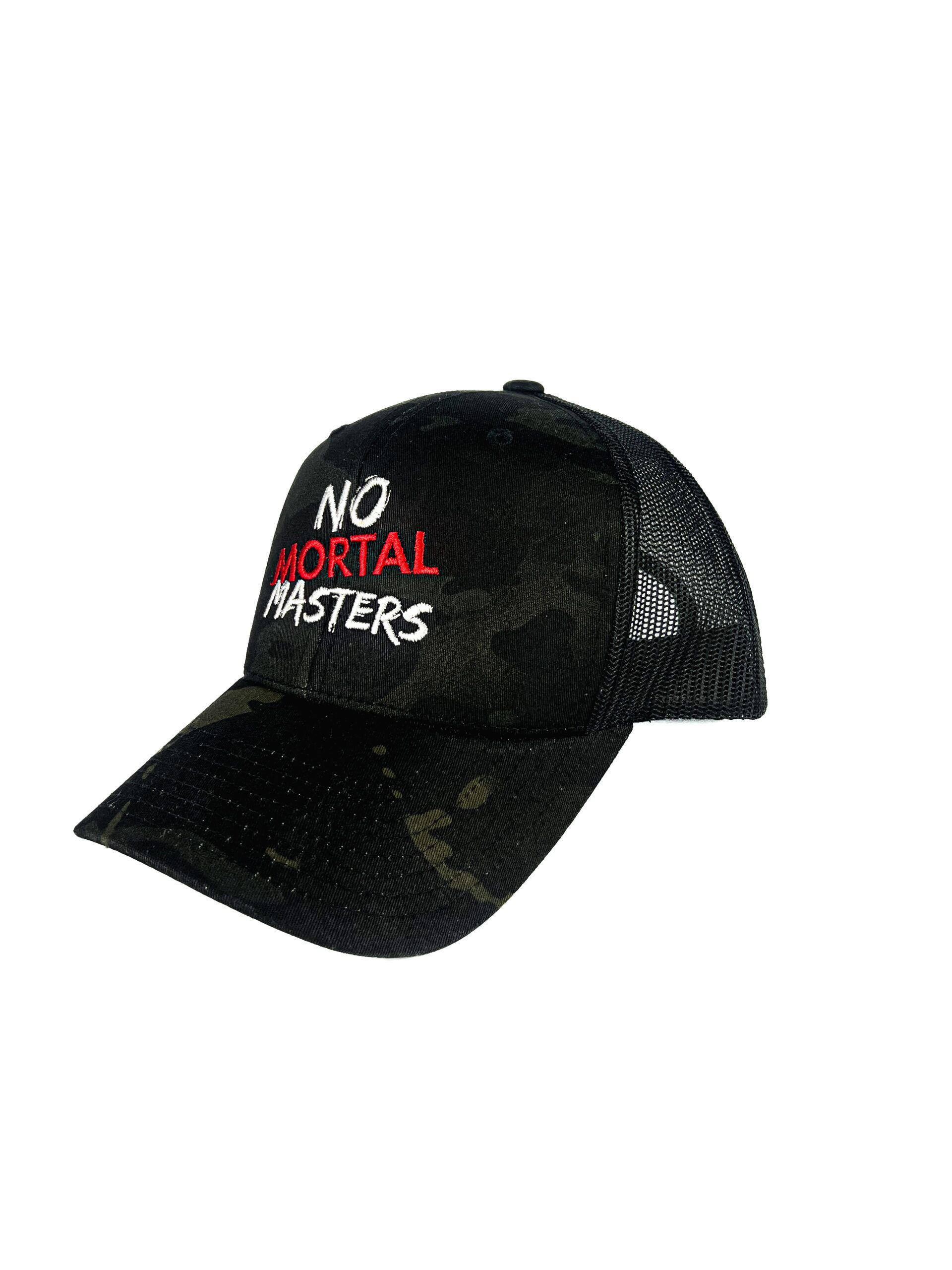 This hat is for Americans who refuse to live on someone else’s fucking terms. Whether you’re trading machine gun fire from car-to-car during a high speed chase in Beirut, surviving naked knife fights in Turkish bath houses, or eating your enemies household pets and setting fire to their pubic hairs while they sleep this is the hat for YOU! Claim your freedom out loud. These hats are 6-panel snapbacks with trucker mesh backs. #NoMortalMasters