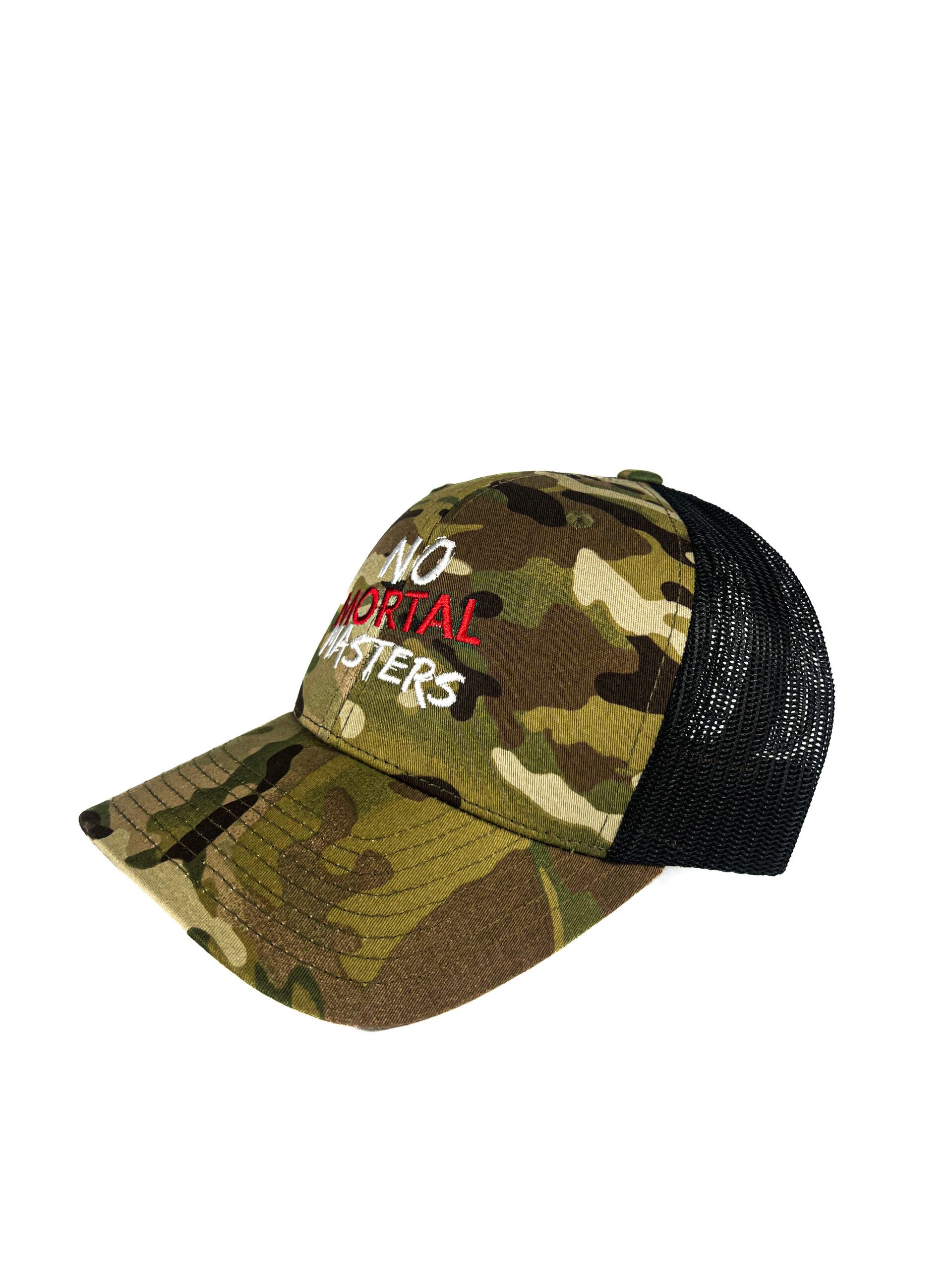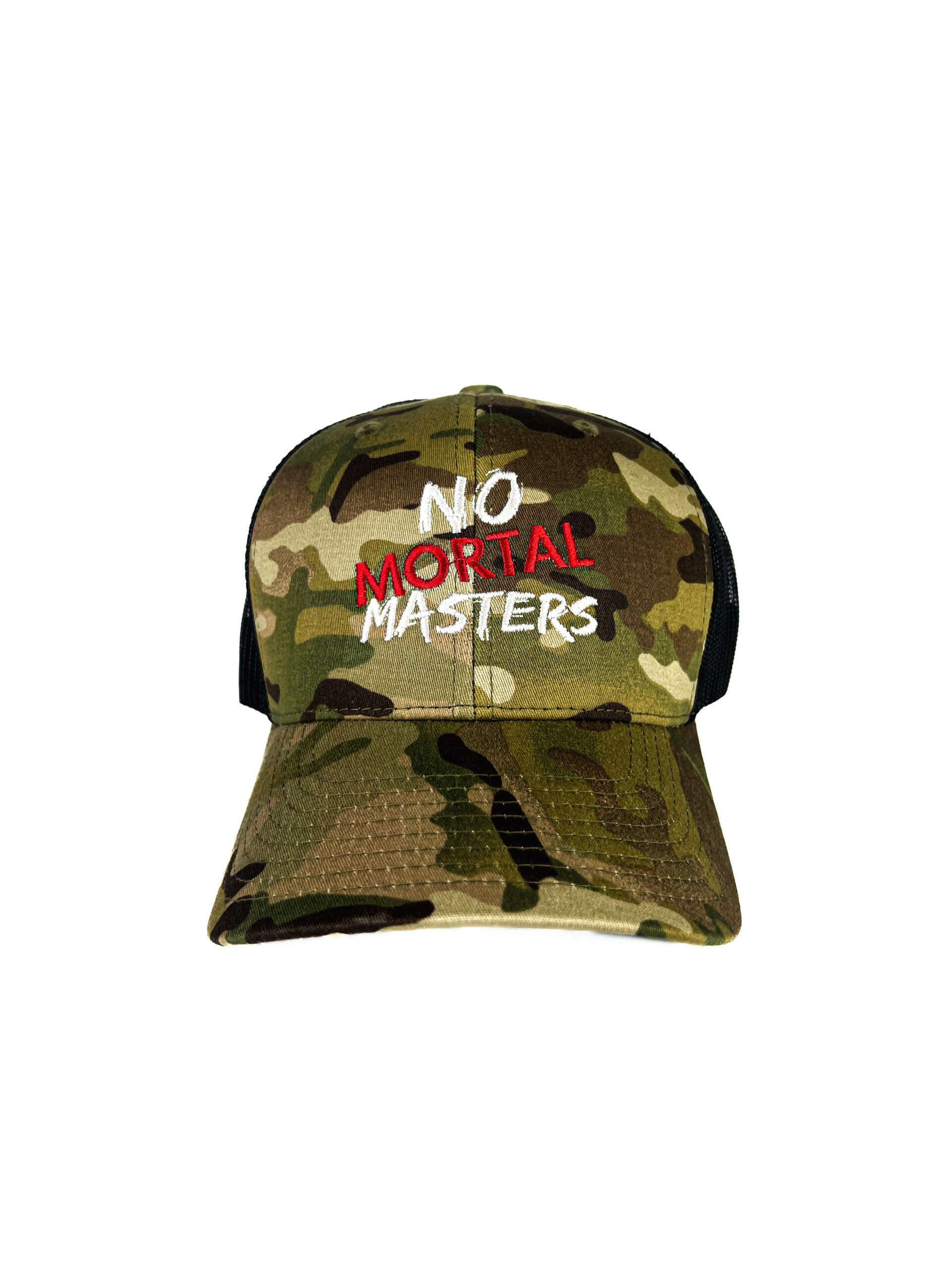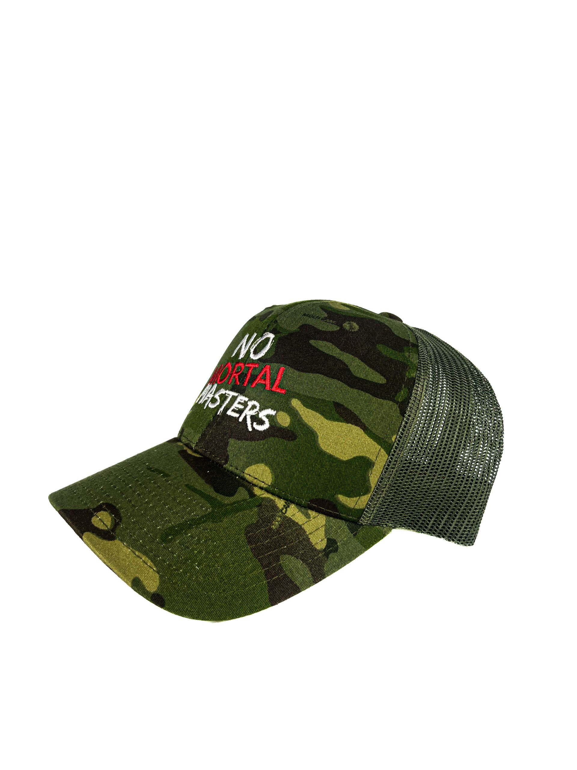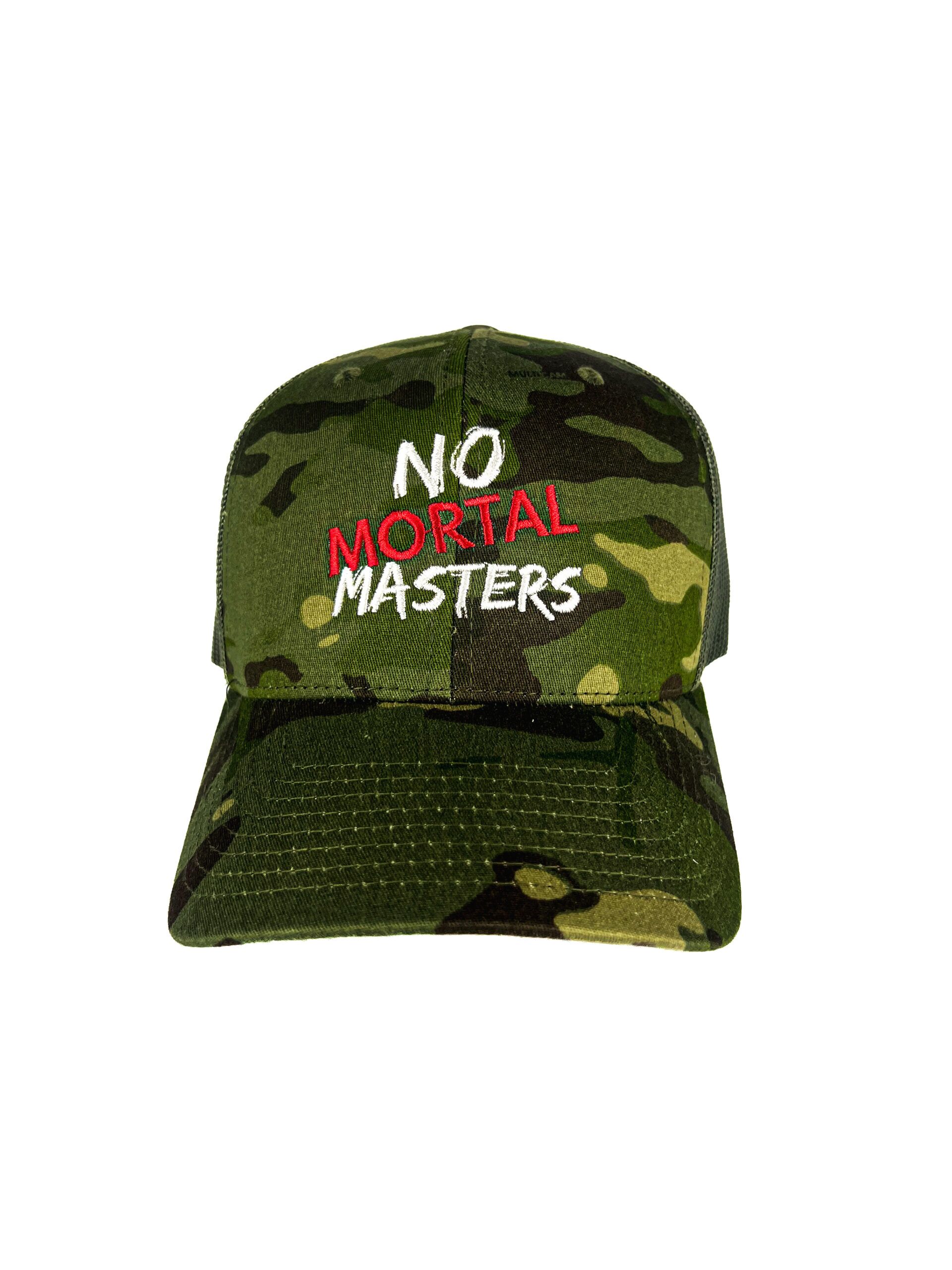 This hat is for Americans who refuse to live on someone else’s fucking terms. Whether you’re trading machine gun fire from car-to-car during a high speed chase in Beirut, surviving naked knife fights in Turkish bath houses, or eating your enemies household pets and setting fire to their pubic hairs while they sleep this is the hat for YOU! Claim your freedom out loud. These hats are 6-panel snapbacks with trucker mesh backs. #NoMortalMasters